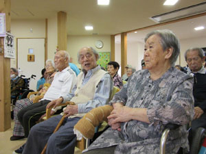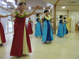 『敬老会』 朝夕とても涼しく、過ごしやすくなりましたね。 敬老の日の昼食は、厨房職員が腕によりをかけて作った『祝い膳』でした。 食べきれないほどのごちそうで、特に茶碗むしを喜ばれていました。 今年の敬老会は、ボランティアで活躍されています『ビューティフルフラ ロケラニ』の 皆さんに、フラダンスを披露していただきました。 ゆったりと優雅で、とても素敵でした。 思わず一緒に踊ってしまう職員も・・・(*'▽') ありがとうございました。 会の終わりには、今年白寿を迎えられたお2人に、職員が心を込めて折った千羽鶴を、 そして入居者様全員に、レクリエーションやリハビリで使用するボールを贈呈させていただきました。 皆さまがいつまでもお元気でお過ごしいただけますように・・・ 私たち職員一同、これからも精一杯がんばって参ります。