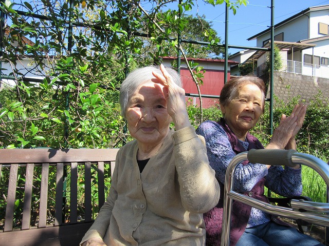 『秋の風』 朝晩が過ごしやすくなりましたね。 デイサービスの途中で、お外に散歩に行きました。 久しぶりの日光浴がとても気持ちよく、お話がはずんでいらっしゃいました♪