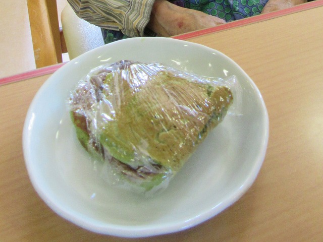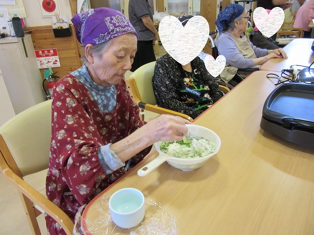 午後のデイサービスは、どらやきパーティーでした。 今年は抹茶入りです。 生クリームやあんこをはさみ、おいしいどら焼きができました♪