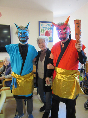 『節分』 寒い中にも、日中は少しずつ春の暖かさを感じるようになりました。 先日のデイサービスで、節分の豆まきをしました。 数日前から楽しみにされていた方もいらっしゃったようです♪ 当日の昼食は、厨房職員手作りの巻きずしでした。 煮豆もふっくらとおいしそうで、皆さまがとても喜ばれていました♪