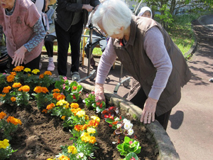 『ガーデニング』 お天気の良い日を利用して、利用者と職員でガーデニングを楽しみました。 皆さんで色合いを見ながらポットから植え替えをしました。 とてもきれいに仕上がりました。 |